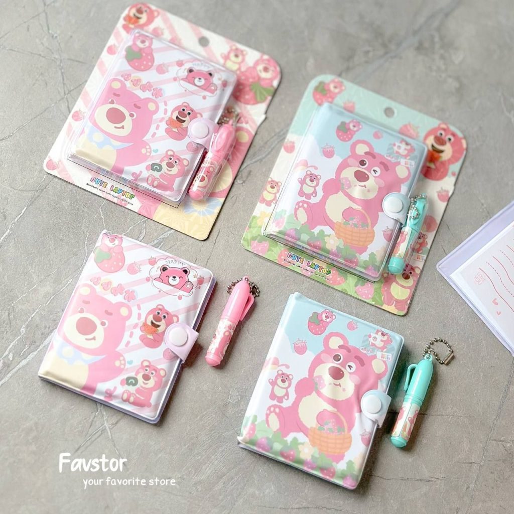 ست دفترچه و مینی خودکار طرح خرس و توت فرنگی Lotso کد E-001