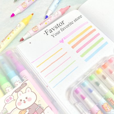 ست 6 عددی هایلایتر دو سر طرح خرس و خرگوش کد 939