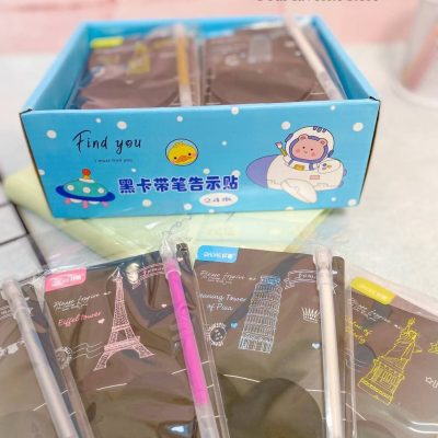 ست استیک نوت مشکی قلبی و روان نویس مون لایت QIANKE طرح برج کد BQ_1081