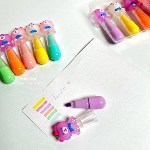 ست 6 عددی هایلایتر دو سر طرح خرس و خرگوش کد 939