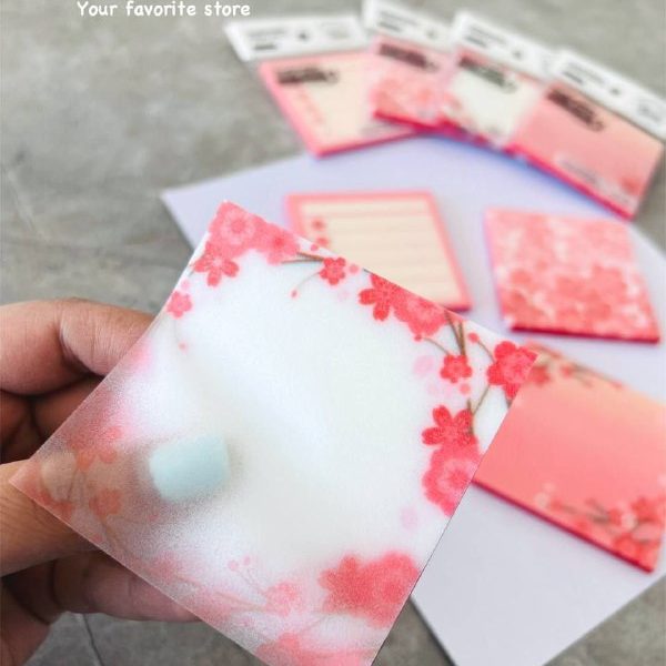 28,000 توماناستیک نوت شفاف شاینی 7.5 * 7.5 طرح گل ساکورا