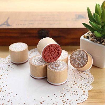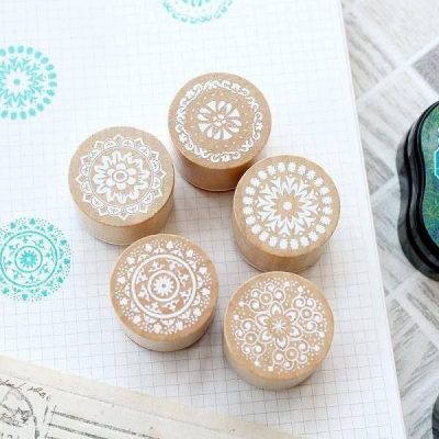 ست 6 عددی مهر چوبی گرد طرح گل
