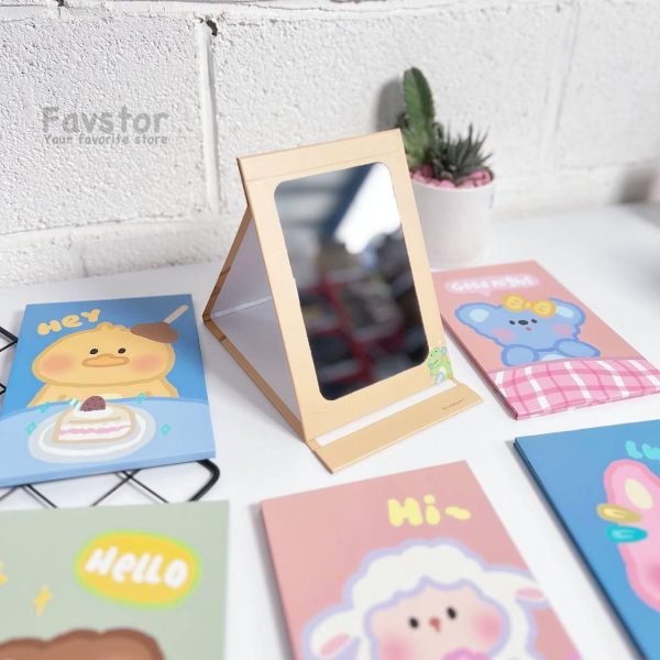 2-آینه‌های کتابی و پایه‌دار: اگر دغدغه این را دارید که آینه جیبی شما امکان قرارگیری در یک سطح مانند روی میز را داشته باشد؛ حتماً آینه پایه‌دار طرح جوجه و یا حتی آینه کتابی پاستلی طرح دختر را از دست ندهید. علاوه بر این، اگر معتقدید که آینه‌های کتابی کمتر کثیف شده و گرد و خاک رویشان می‌نشیند؛ این آینه‌ها را به راحتی می‌توانید از فروشگاه فیواستور تهیه کنید.