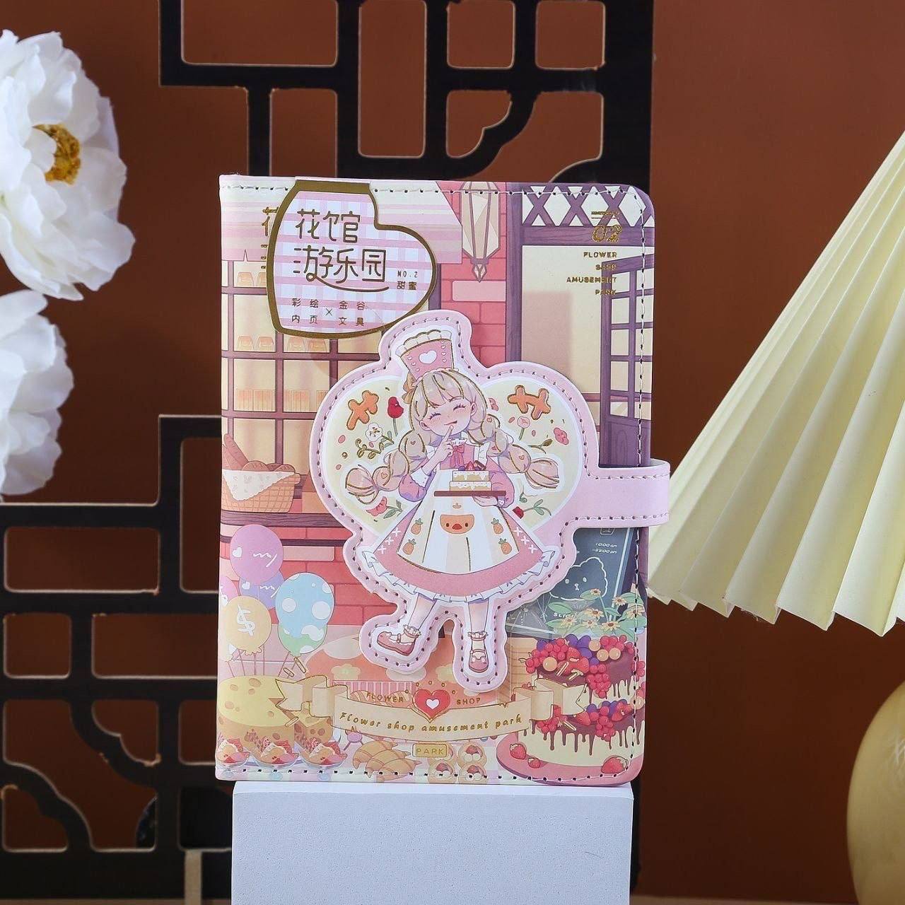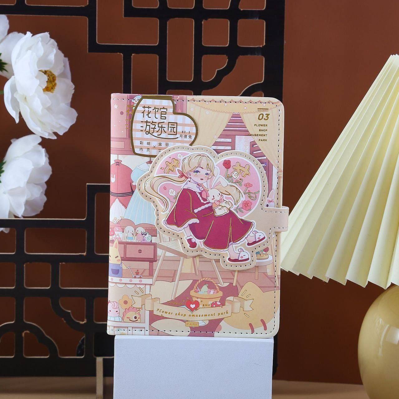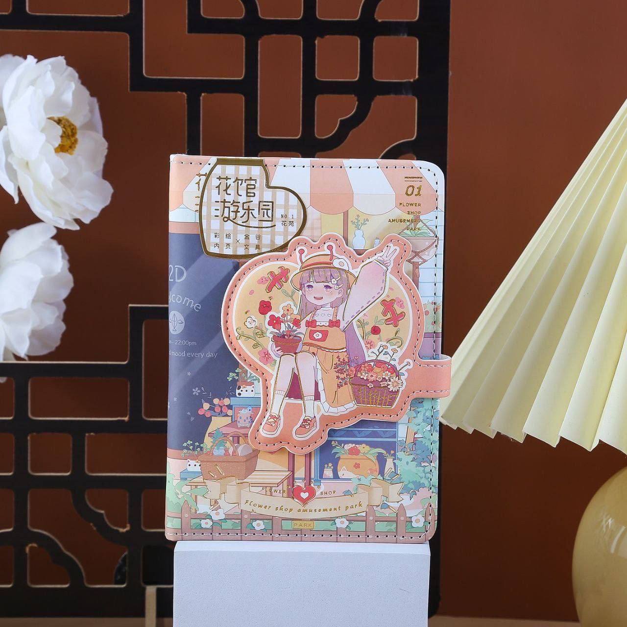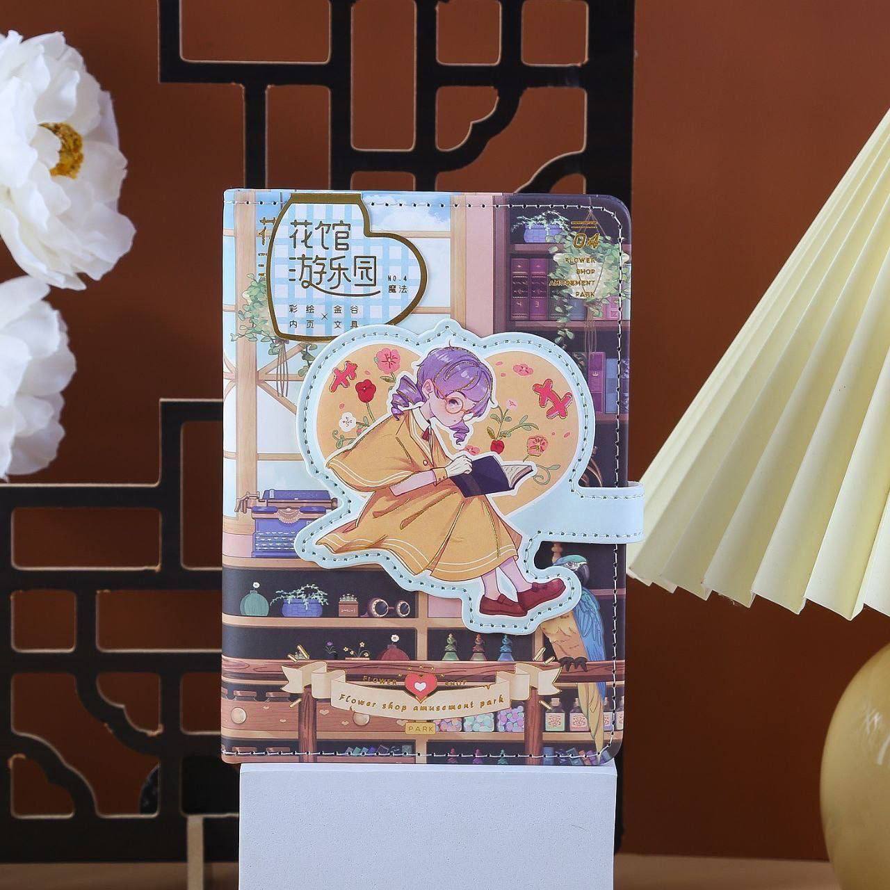 دفترچه جلد پفکی مگنتی JINGU طرح دختر FLOWER SHOP کد 6912