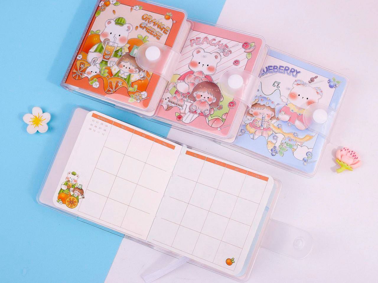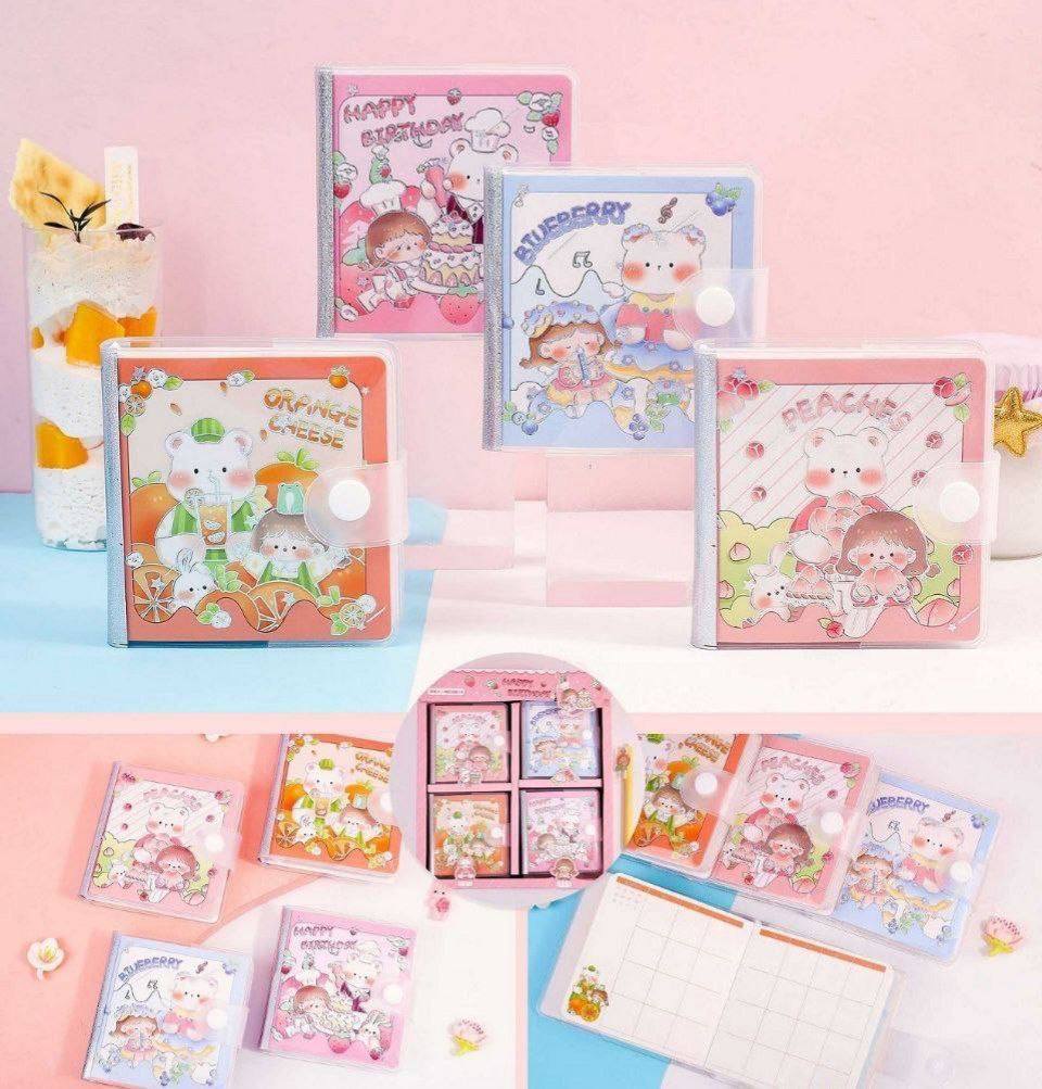 دفترچه مجلد دکمه ای JINGU طرح دختر و خرس HAPPY BIRTHDAY کد 2821
