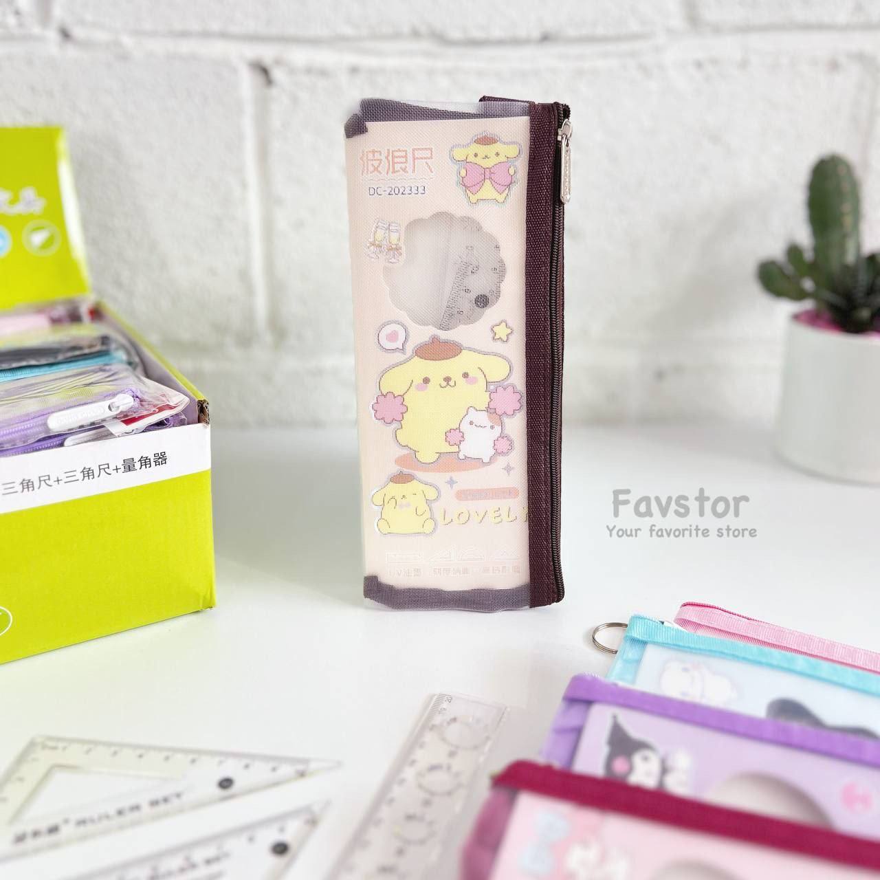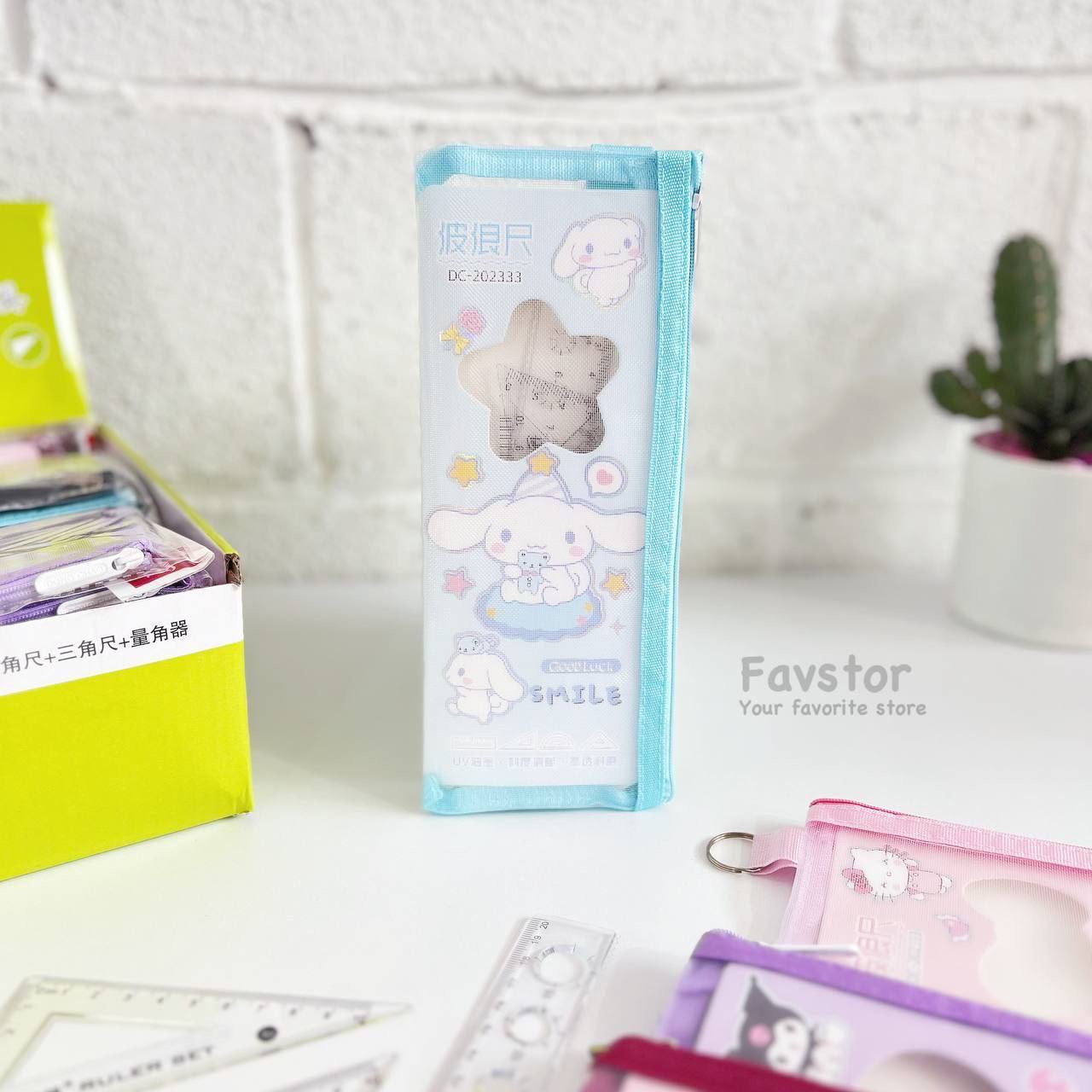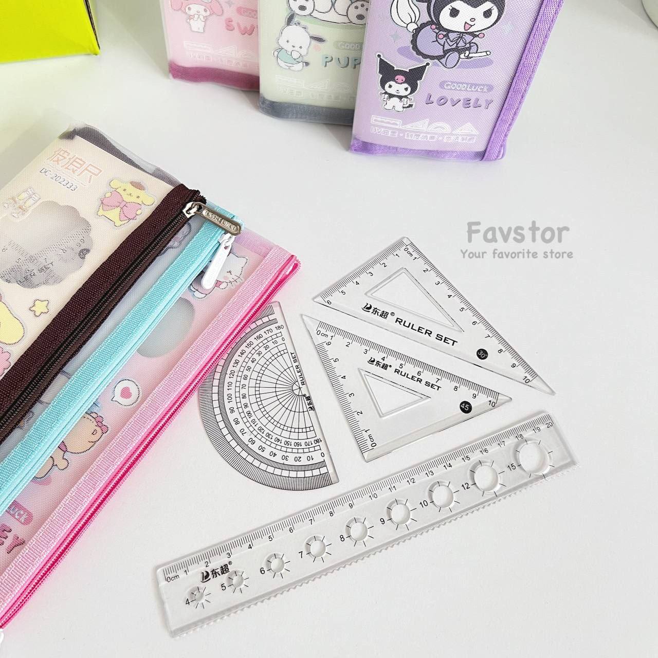 ست 5 تکه خط کش، گونیا، نقاله شفاف DONGCHAO طرح کرومی و Sanrio کد DC-202333