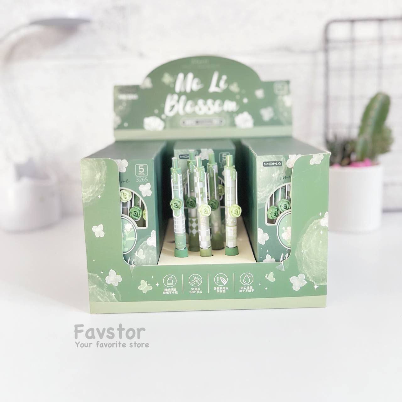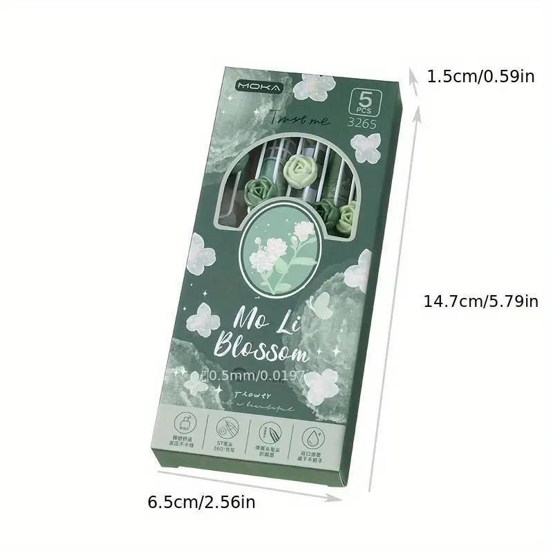 ست 5 عددی روان نویس کلیکی گریپ طرح دار MOKA طرح گل Mo Li Blossom کد MK-3265